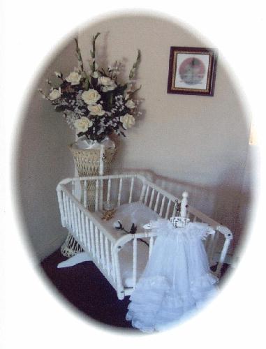 Cindi Wade asked Terri to write this poem for a memorial service entitled "The Empty Cradle", which was held on May 12, 2000 in Bakersfield. Cindi has planned these services as an annual community event in memory of her grandchild who was aborted in 1998. Terri also wrote a poem for the 1999 service, entitled "The White Rose." (Terri actually wrote 21/2 "Empty Cradle" poems, but that's another story!)